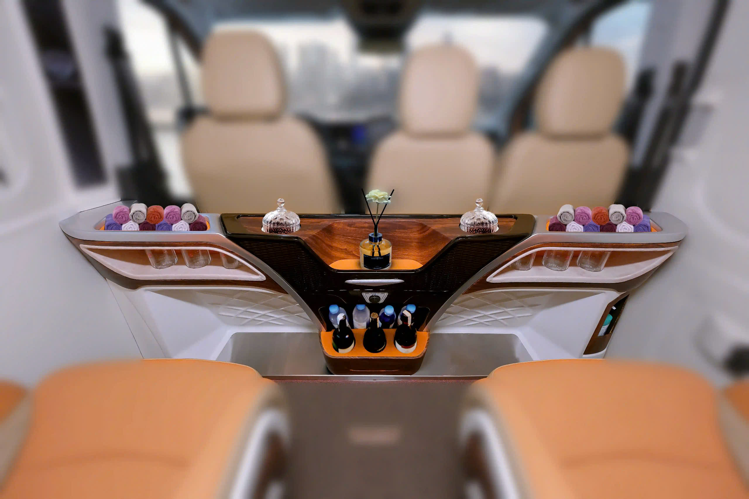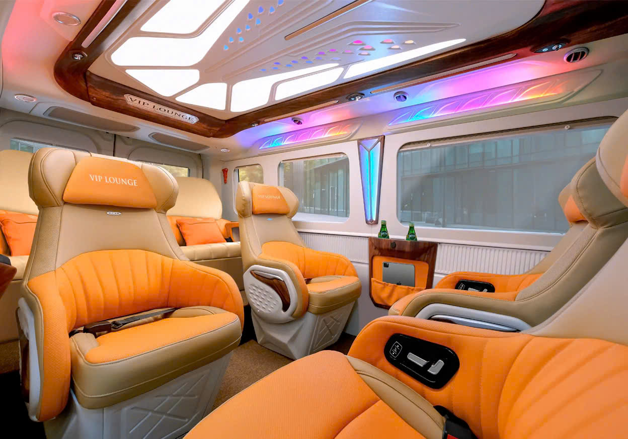 DCar VIP LOUNGE – Ford Transit Lấy cảm hứng từ những phòng lounge cao cấp của những khách sạn xa hoa, DCAR thổi hồn vào không gian nội thất DCAR VIP Lounge thiết kế lộng lẫy, đậm phong cách Châu Âu.